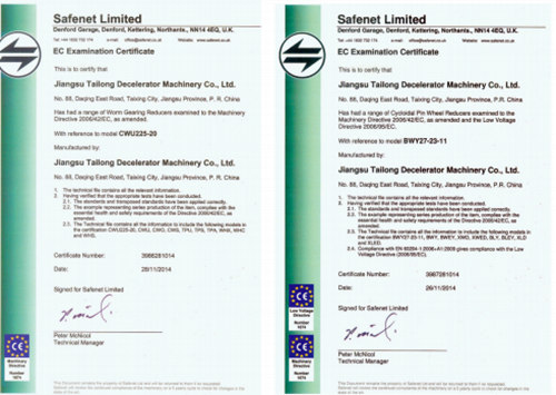 泰隆減速機(jī)質(zhì)量認(rèn)可證書